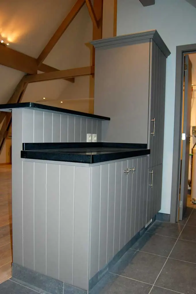 Depuis 1995, nous concevons et fabriquons des cuisines en bois dans notre atelier de Limelette. Caissons en bois massif ou en panneau haute densité, façades en chêne, frêne ou MDF laqué, plans de travail en bois, granit, quartz ou Dekton — chaque combinaison est possible et étudiée avec vous.